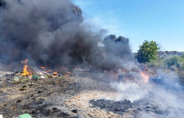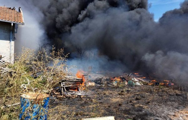 Požar je prvo zahvatio travu i nisko rastinje, a zatim se proširio na objekat za reciklažu i proizvodnju paleta, buradi i kontejnera, površine oko 200 metara kvadratnih.