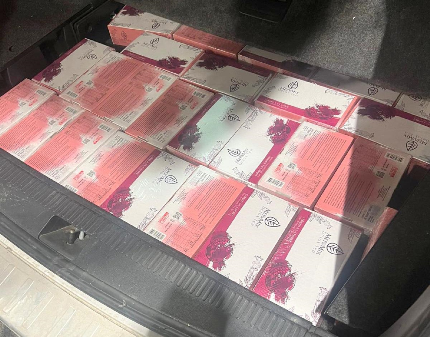 Tom prilikom u automobilu je pronađeno 107 pakovanja čaja za mršavljenje “MERVMIX DETOX TEA“, 75 pakovanja kafe za mršavljenje “MERVMIX COFFEE“ i 48 tegli meda za mršavljenje “MERVMIX HERBAL PASTE“.