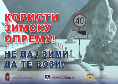 JP „Putevi Srbije“ apeluje na sve učesnike u saobraćaju da ne kreću na put bez obavezne zimske opreme, jer se sutra, 9. januara u večernjim satima u većem delu Srbije očekuju sneg i kiša koji će se mestimično lediti pri tlu.