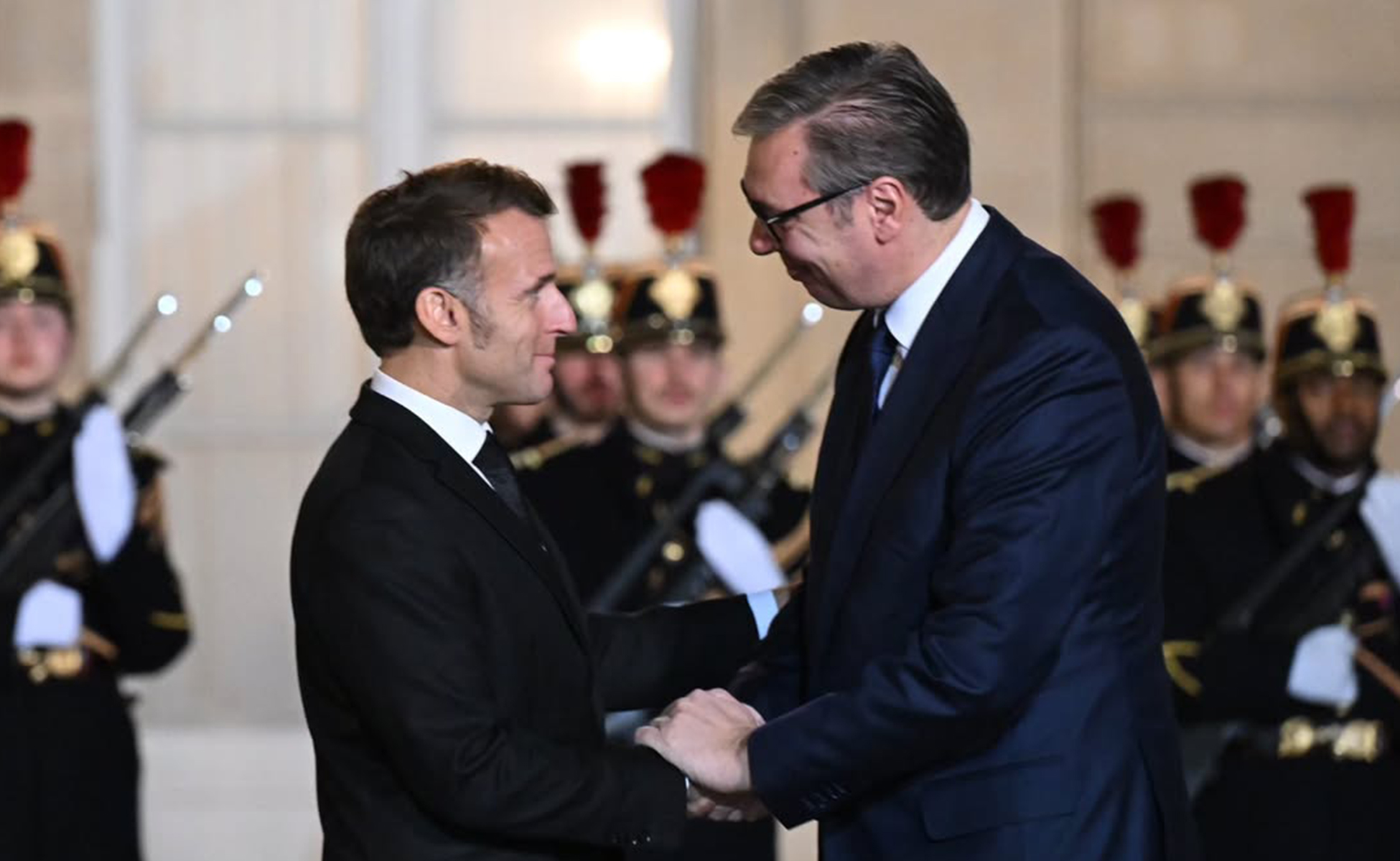 Makron je Vučiću priredio svečani doček ispred Jelisejske palate u kojoj je Makron organizovao radnu večeru.