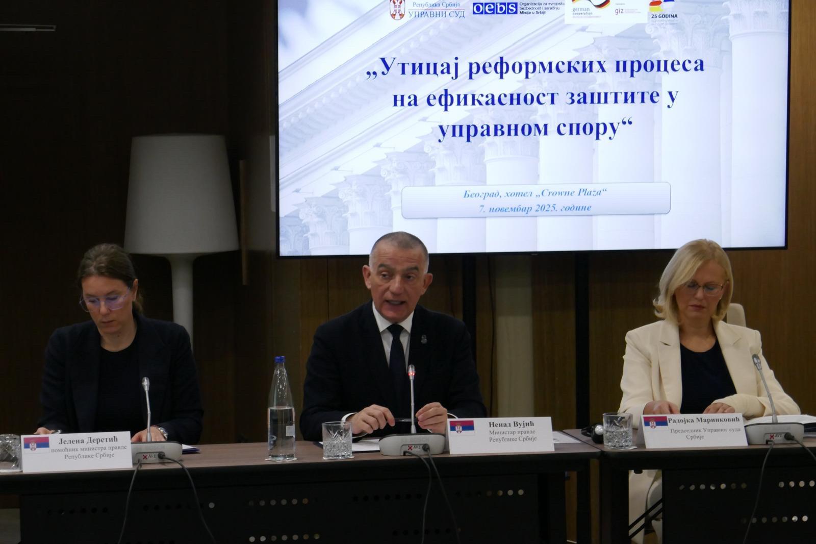 Ministar pravde Nenad Vujić poručio je danas da reforma upravnog sudstva nije samo pravno, već i društveno pitanje, koje predstavlja temelj sudske kontrole zakonitosti rada uprave i ogledalo stepena vladavine prava u našoj zemlji.