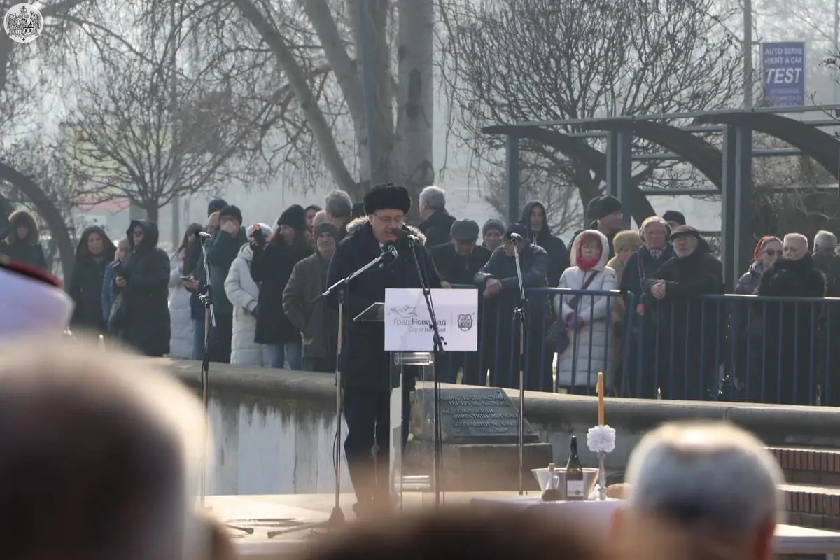 „Sećajući se svega što se zbilo, danas ne govorimo glasno pred ovim mestom, pred imenima i senima onih koji su u januaru 1942. godine ubijeni bez suda i bez krivice. Naša dužnost je da zastanemo, da se setimo i da ne okrenemo glavu. Sećanje nije okrenuto prošlosti, radi prošlosti; ono je čin odgovornosti prema budućnosti“, naglasio je gradonačelnik Novog Sada Žarko Mićin.