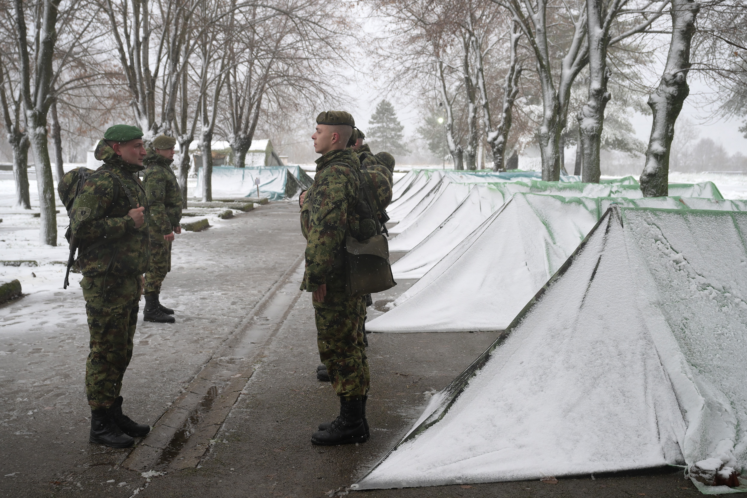 Najmlađi vojnici na služenju vojnog roka, koji su u centre Vojske Srbije za osnovnu obuku primljeni početkom ovog meseca, nalaze se na stacionarnom logorovanju na poligonima u okolini Sombora, Valjeva i Leskovca.