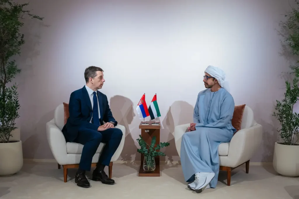 Ministar spoljnih poslova Marko Đurić sastao se u Abu Dabiju sa Njegovim Visočanstvom šeikom Abdulahom bin Zajedom Al Nahjanom, zamenikom premijera i ministrom inostranih poslova Ujedinjenih Arapskih Emirata, sa kojim je razgovarao o jačanju strateškog partnerstva Srbije i UAE, saopšteno je iz Ministarstva spoljnih poslova Srbije.