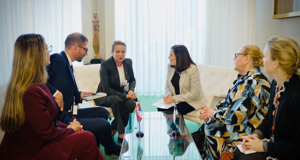 Ministarka državne uprave i lokalne samouprave Republike Srbije Snežana Paunović održala je danas bilateralni sastanak sa ministarkom za socijalnu sigurnost Republike Finske Sani Gran-Lasonen, na marginama 70. zasedanja Кomisije Ujedinjenih nacija za status žena.