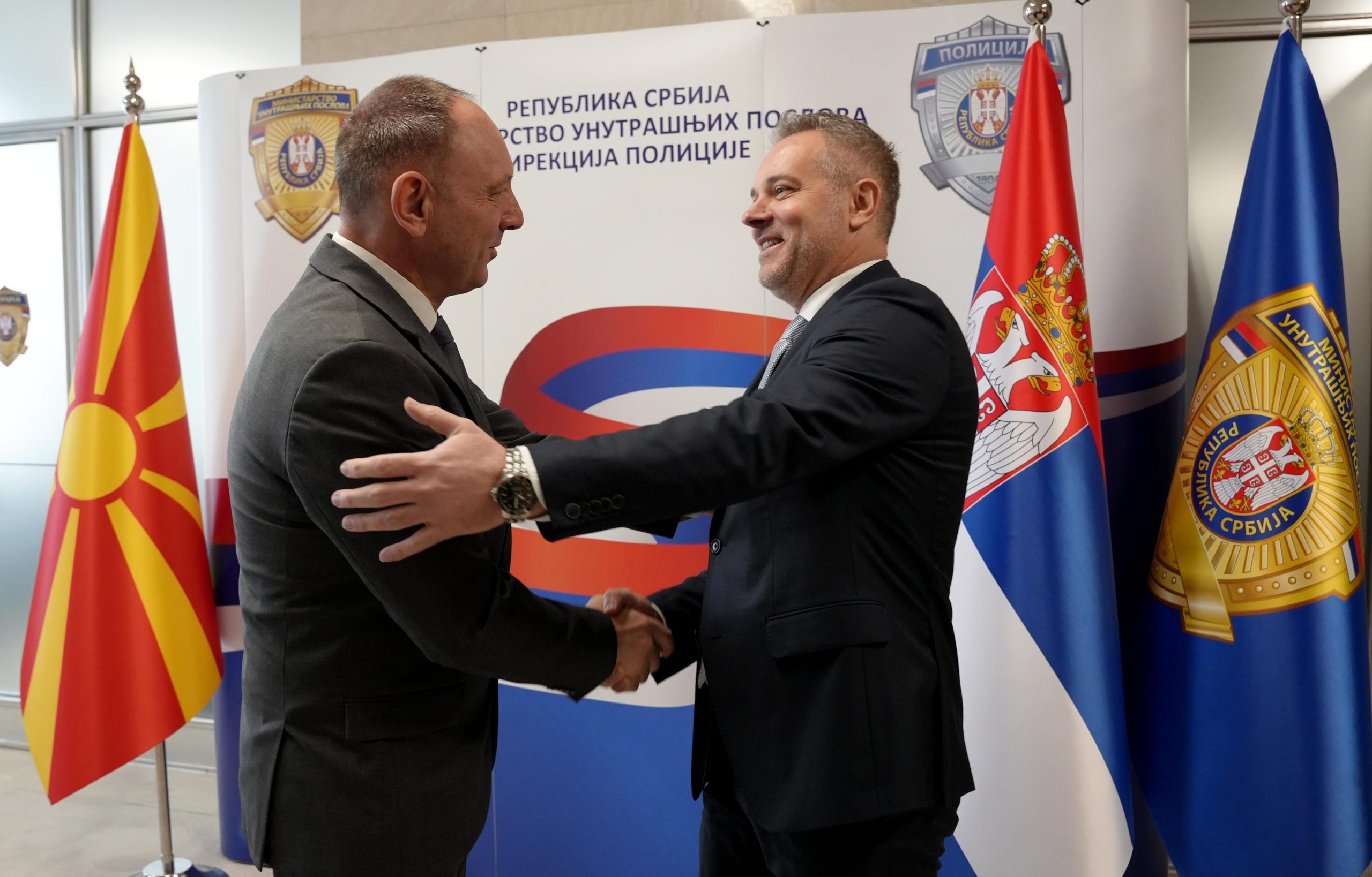 Direktor policije Republike Srbije, general policije Dragan Vasiljević i direktor Biroa za javnu bezbednost Republike Severne Makedonije Aleksandar Janev, koji boravi u bilateralnoj poseti Republici Srbiji, sastali su se danas u Palati Srbija.